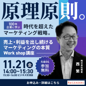 【100年企業に学ぶマーケティング戦略】売上・利益を出し続けるマーケティングの本質ワークショップ講座開催のお知らせ