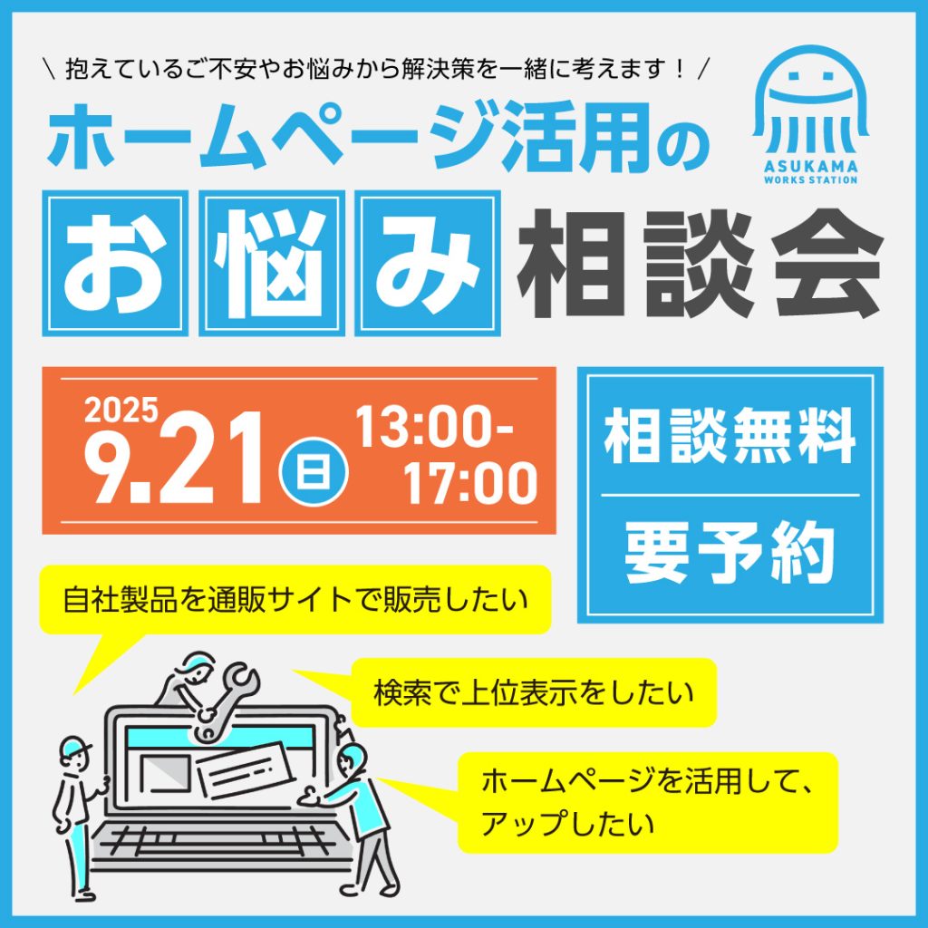 ASUKAMAにて、ホームページ活用についてのお悩み相談会を開催します!